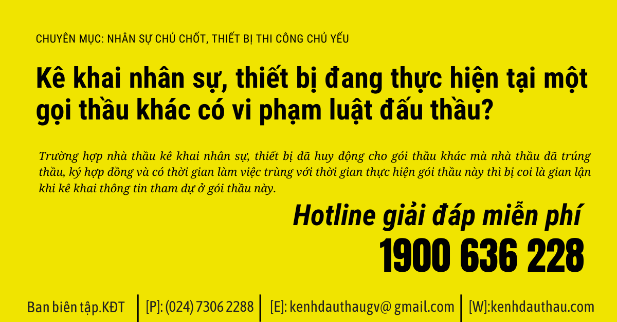 Trường hợp nhà thầu kê khai nhân sự, thiết bị đã huy động cho gói thầu khác mà nhà thầu đã trúng thầu, ký hợp đồng và có thời gian làm việc trùng với thời gian thực hiện gói thầu này thì bị coi là gian lận khi kê khai thông tin tham dự ở…